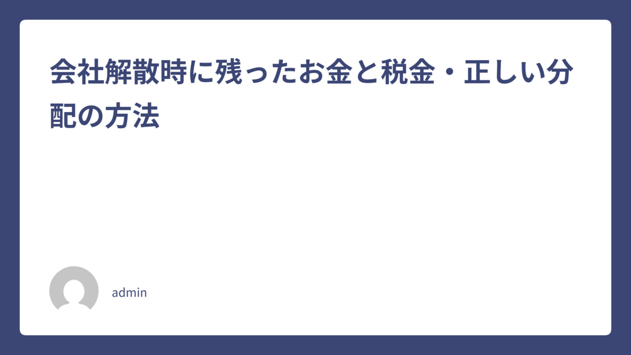 会社を解散すると、清算手続きを経て残った財産(残余財産)を株主へ分配します。残余財産の正しい分配方法やそこにかかる税金の考え方、最新の税務ルール、トラブルなく処理を進めるためのポイントを詳しく解説します。実務で役立つ知識を身につけ、賢くスムーズな会社解散を目指しましょう。
